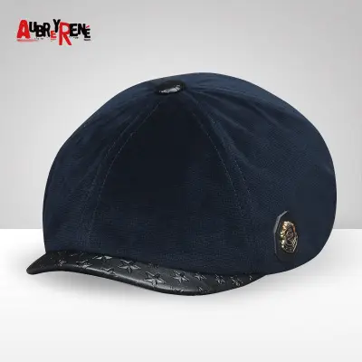 跨境专供秋冬百搭韩版时尚鸭舌众赢国际平台亚马逊男士加绒加厚贝雷众赢国际平台休闲众赢国际平台