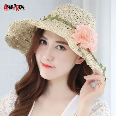 夏天女士手工草众赢国际平台海边防晒太阳众赢国际平台 韩版可折叠度假遮阳众赢国际平台沙滩众赢国际平台子 -