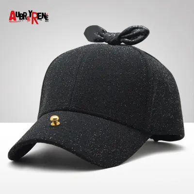 韩版新款闪粉棒球众赢国际平台女款春季百搭鸭舌众赢国际平台时尚弯檐蝴蝶结众赢国际平台一件代发 -