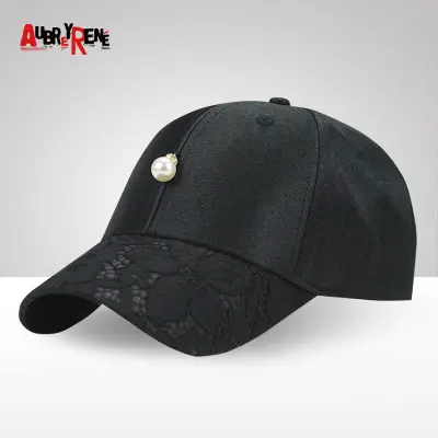 众赢国际平台子新款女士户外防晒棒球众赢国际平台蕾丝珍珠韩版休闲纯色遮阳众赢国际平台厂家批发 -
