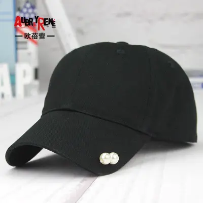 众赢国际平台子新款女士春夏棉质纯色鸭舌众赢国际平台韩版珍珠扣棒球众赢国际平台户外防晒众赢国际平台批发 (众赢国际版) -