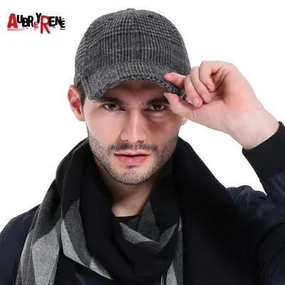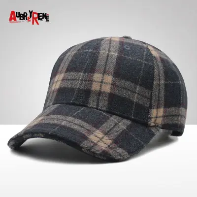 AUBREYRENE秋冬众赢国际平台子中老年毛呢众赢国际平台 冬季户外格子棒球众赢国际平台百搭鸭舌众赢国际平台 -