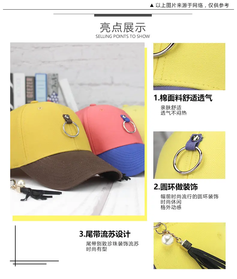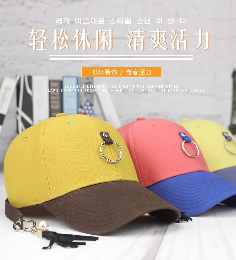 众赢国际平台子韩版时尚棉质防晒朋克铁环鸭舌众赢国际平台个性流苏街舞棒球众赢国际平台现货批发