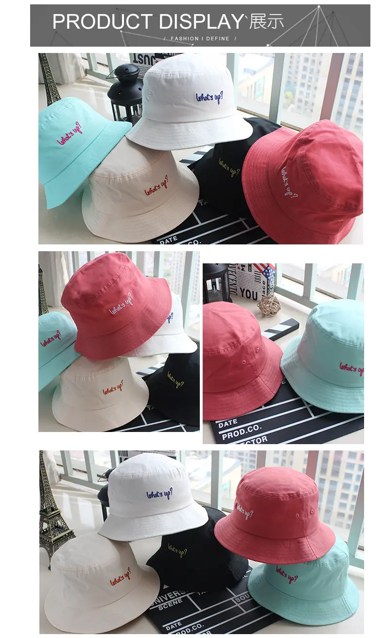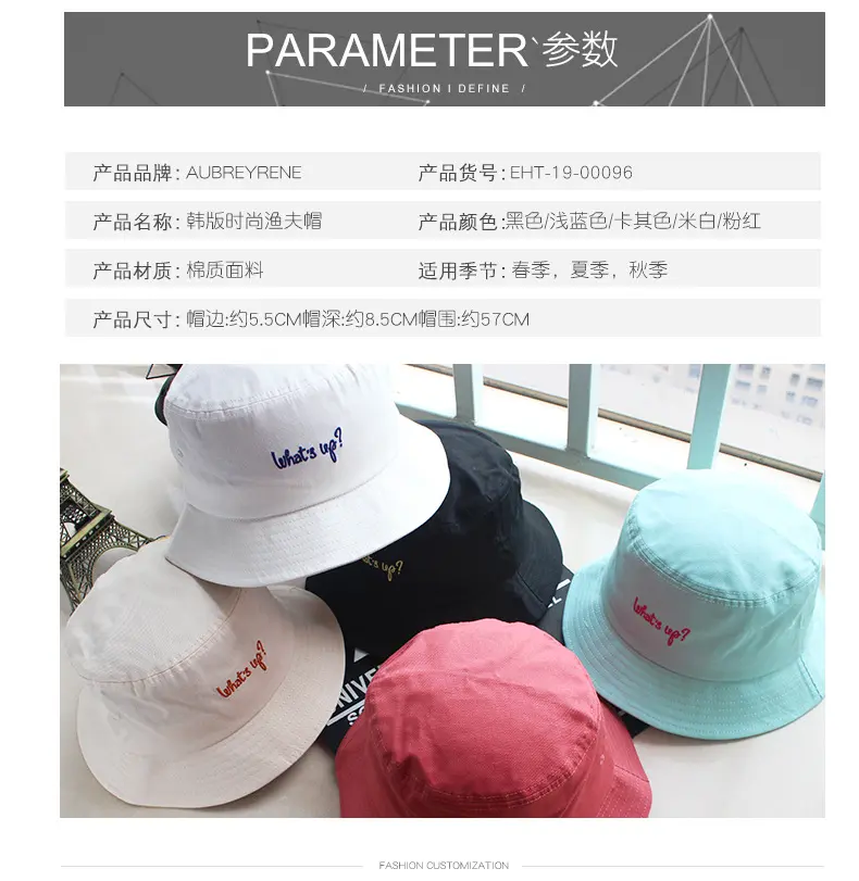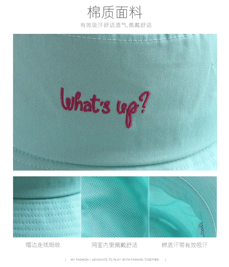 新款韩版字母渔夫众赢国际平台休闲户外出行防晒盆众赢国际平台简约遮阳刺绣沙滩众赢国际平台代发
