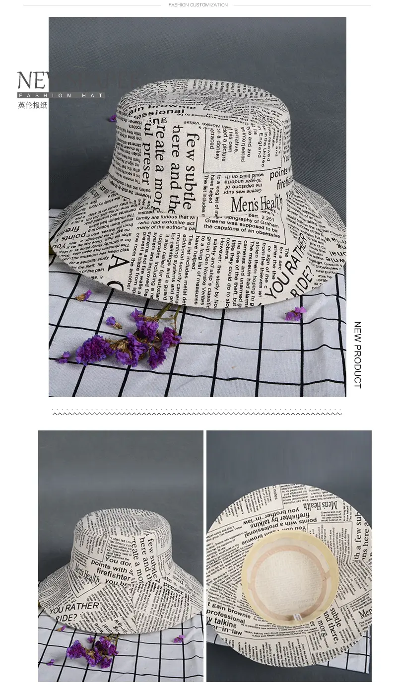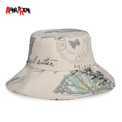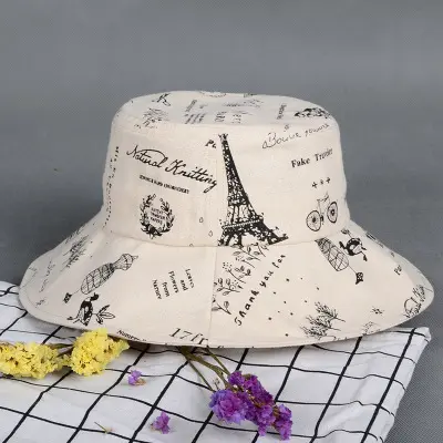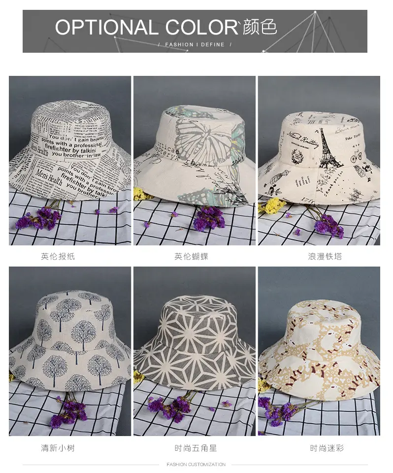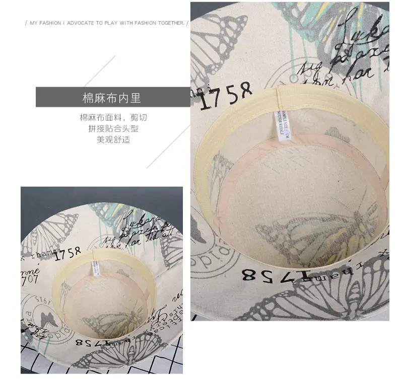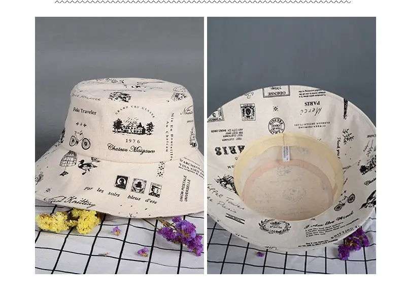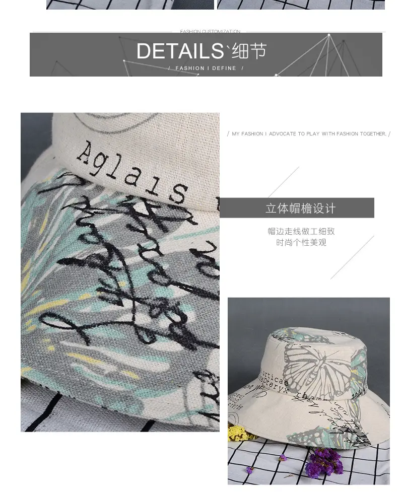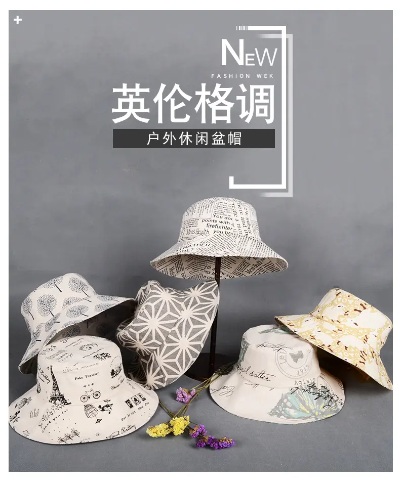 潮版欧美时尚大檐印花渔夫众赢国际平台百搭遮阳众赢国际平台原宿风麻棉可折叠盆众赢国际平台批发
