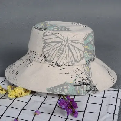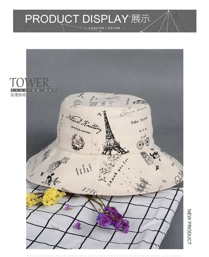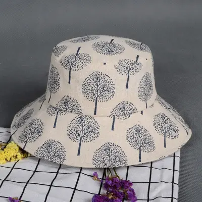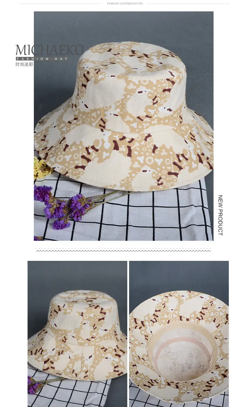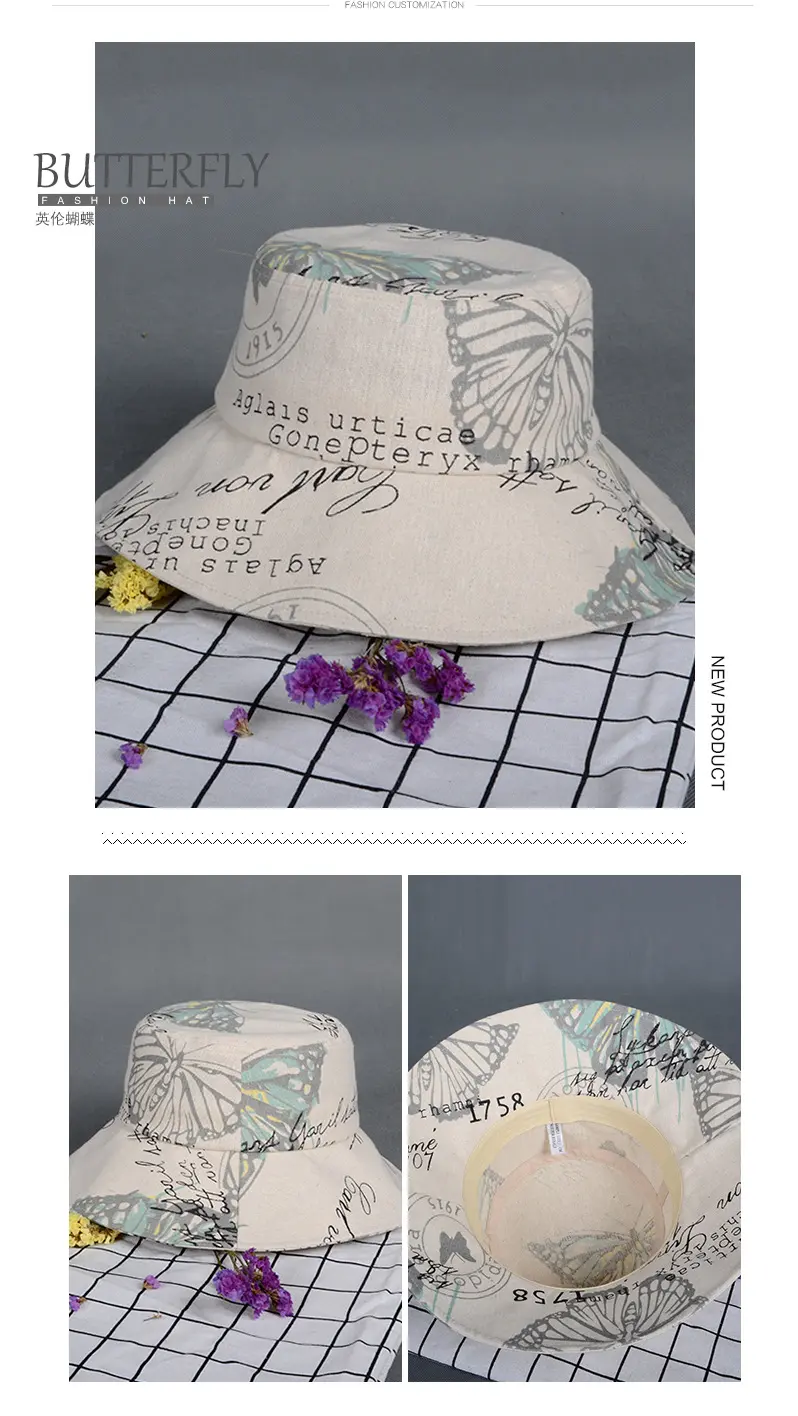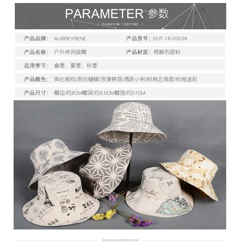 潮版欧美时尚大檐印花渔夫众赢国际平台百搭遮阳众赢国际平台原宿风麻棉可折叠盆众赢国际平台批发