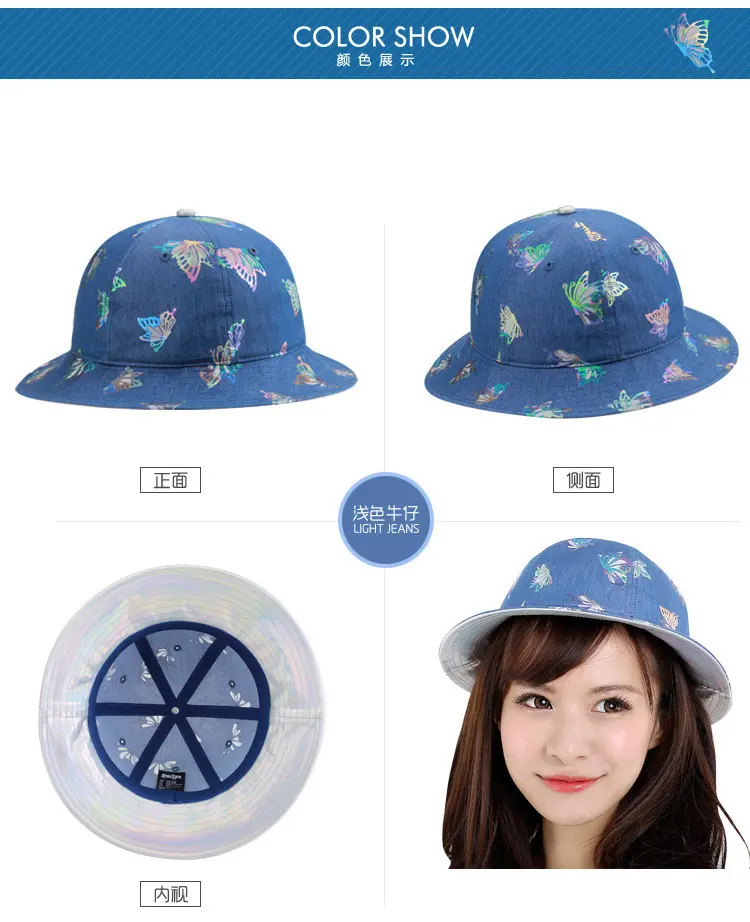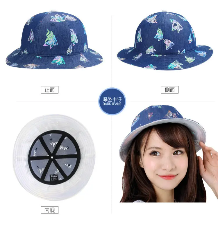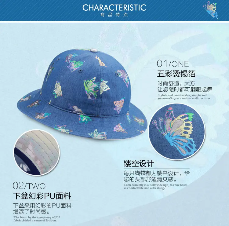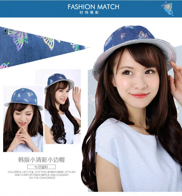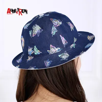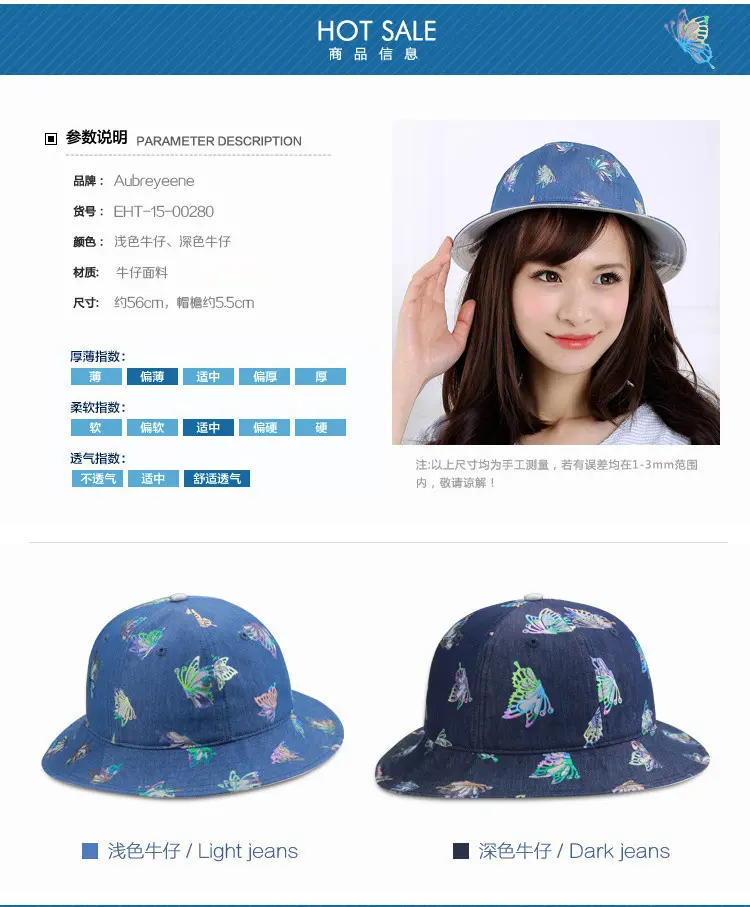 Aubreyrene/欧贝蕾春夏季时尚牛仔渔夫众赢国际平台韩版镂空烫金小边众赢国际平台批发