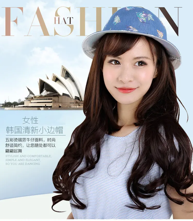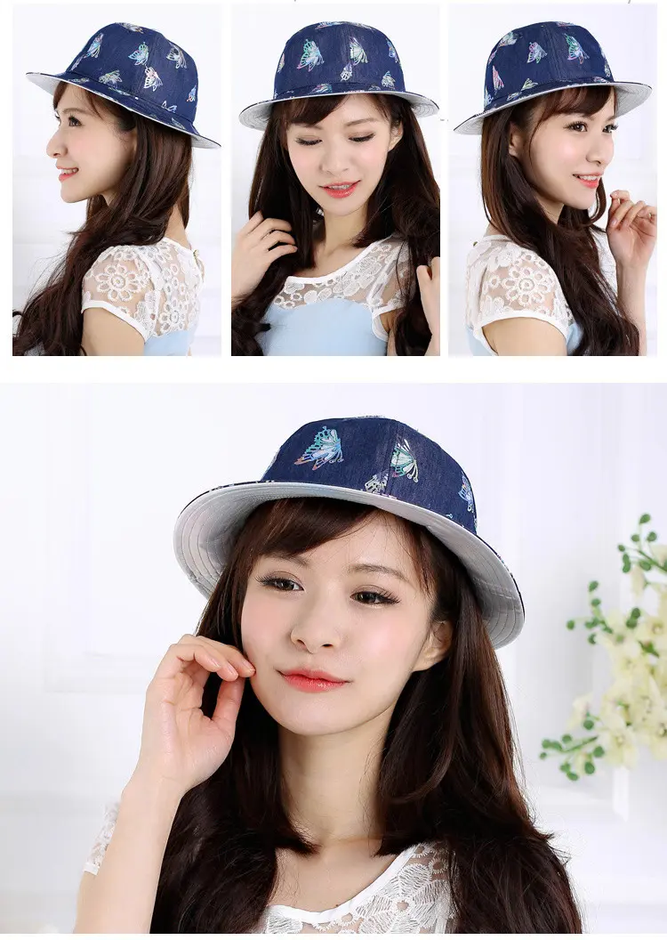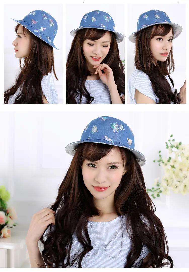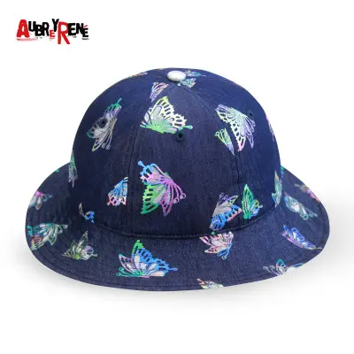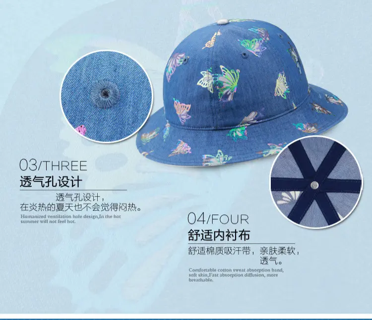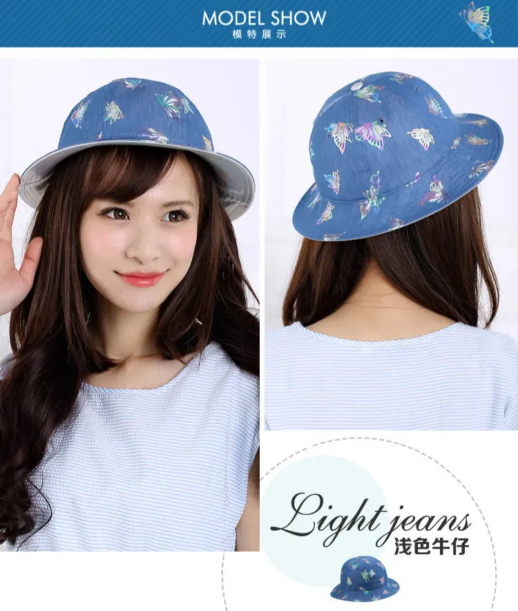 Aubreyrene/欧贝蕾春夏季时尚牛仔渔夫众赢国际平台韩版镂空烫金小边众赢国际平台批发