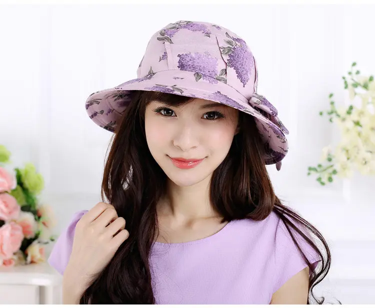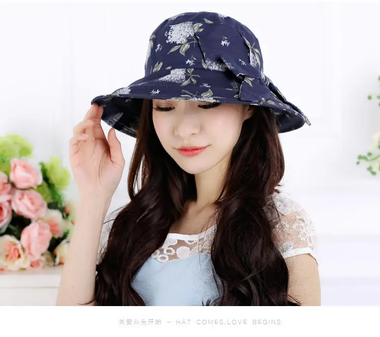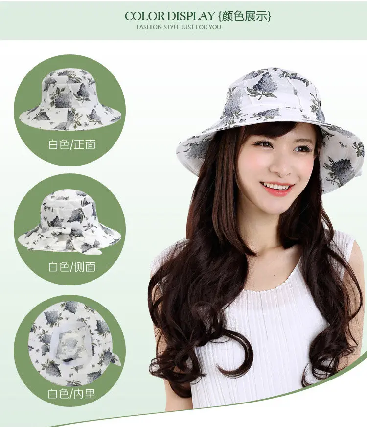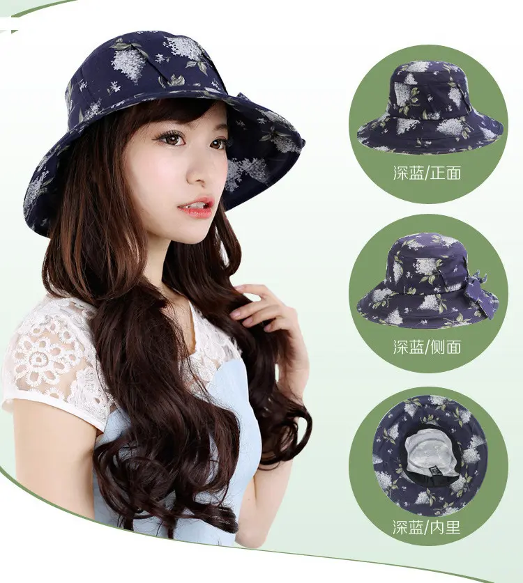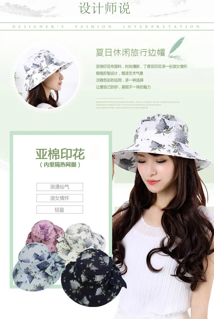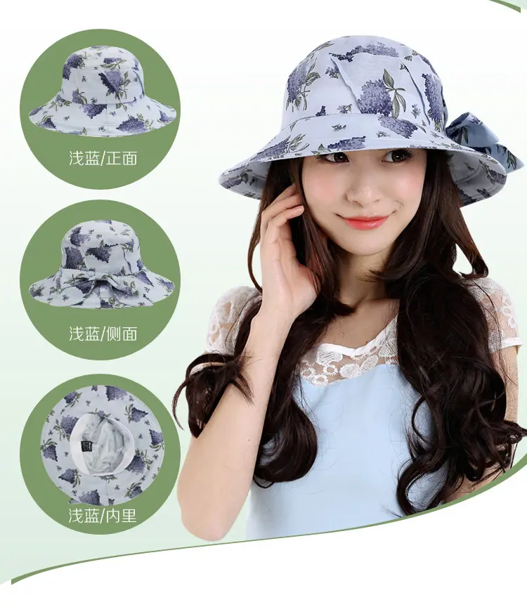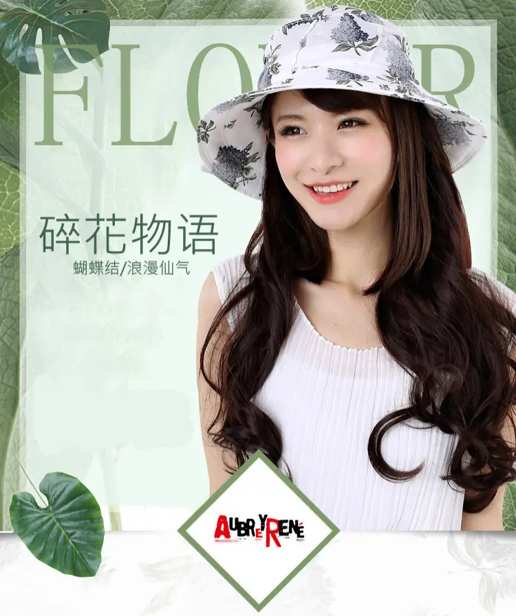 AUBREYRENE/欧贝蕾 女士防晒遮阳大边众赢国际平台韩版淑女印花麻棉渔夫众赢国际平台