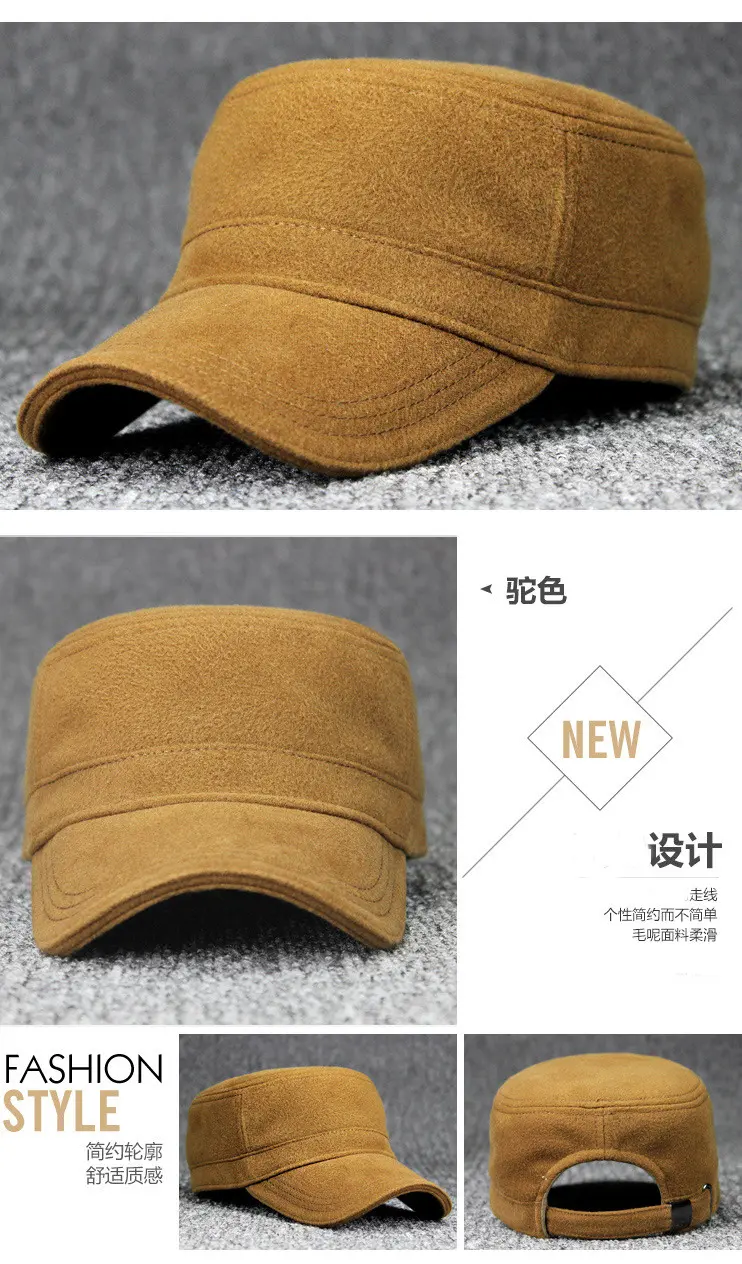 "众赢国际版" 众赢国际平台子秋冬男士新款保暖呢料平顶众赢国际平台时尚纯色韩版军众赢国际平台户外鸭舌众赢国际平台批发