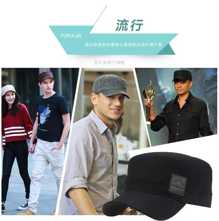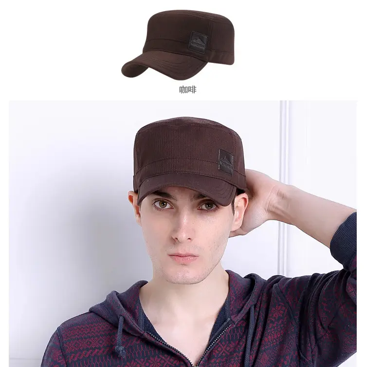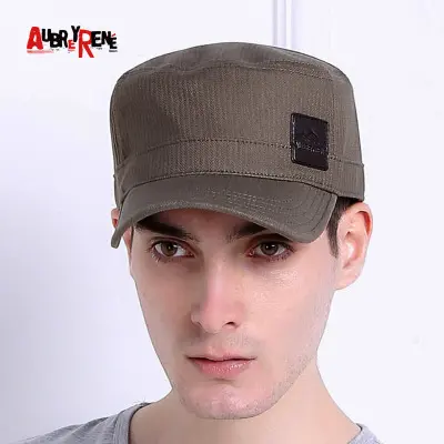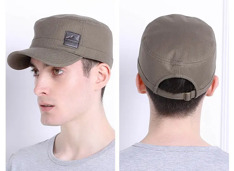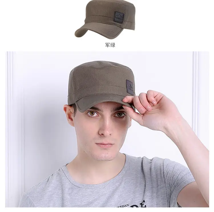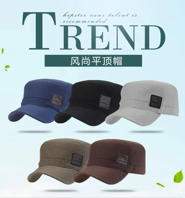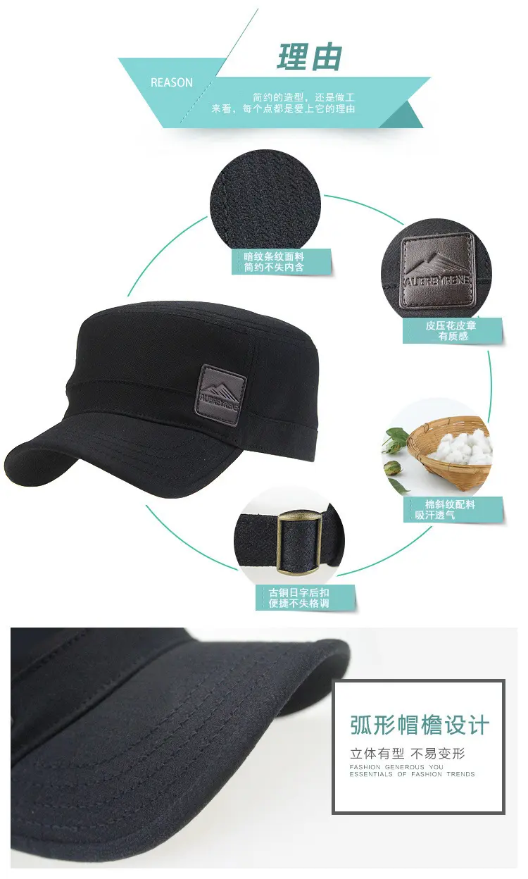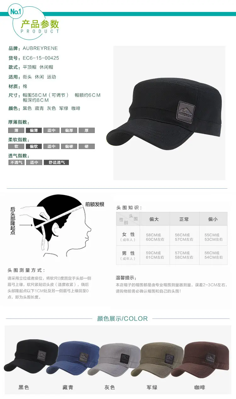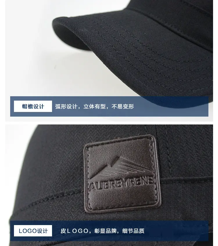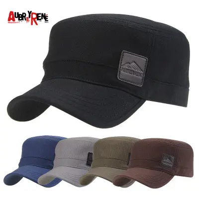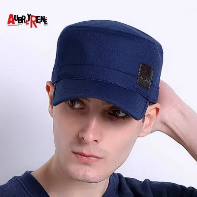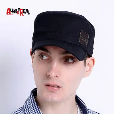 AUBREYRENE百搭春夏新款平顶众赢国际平台男士遮阳众赢国际平台真皮绣花章棉军众赢国际平台批发