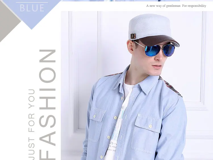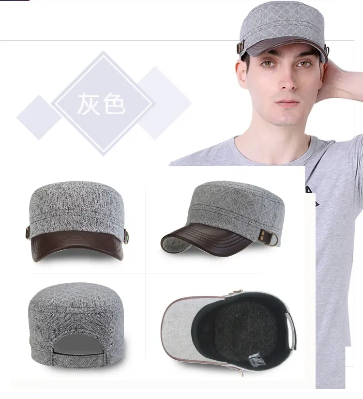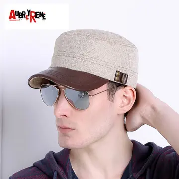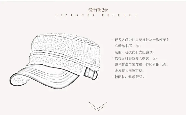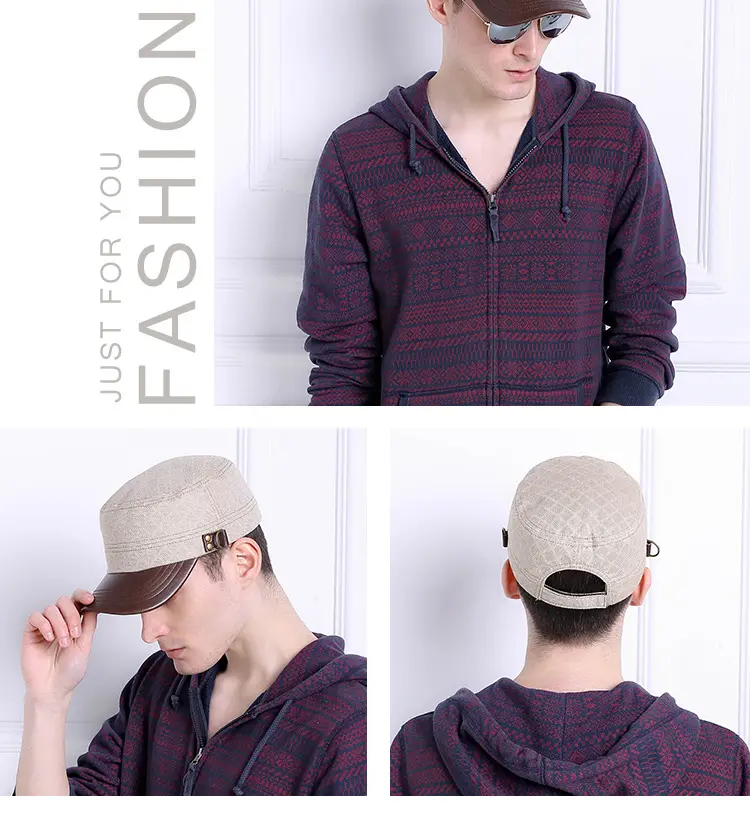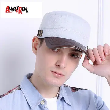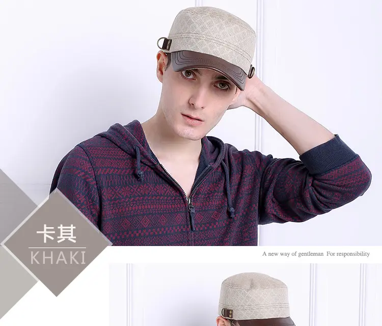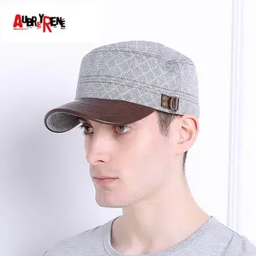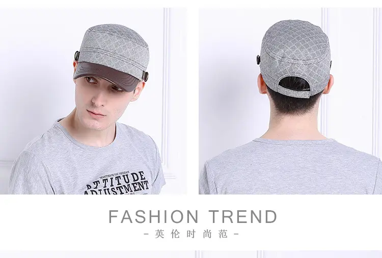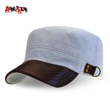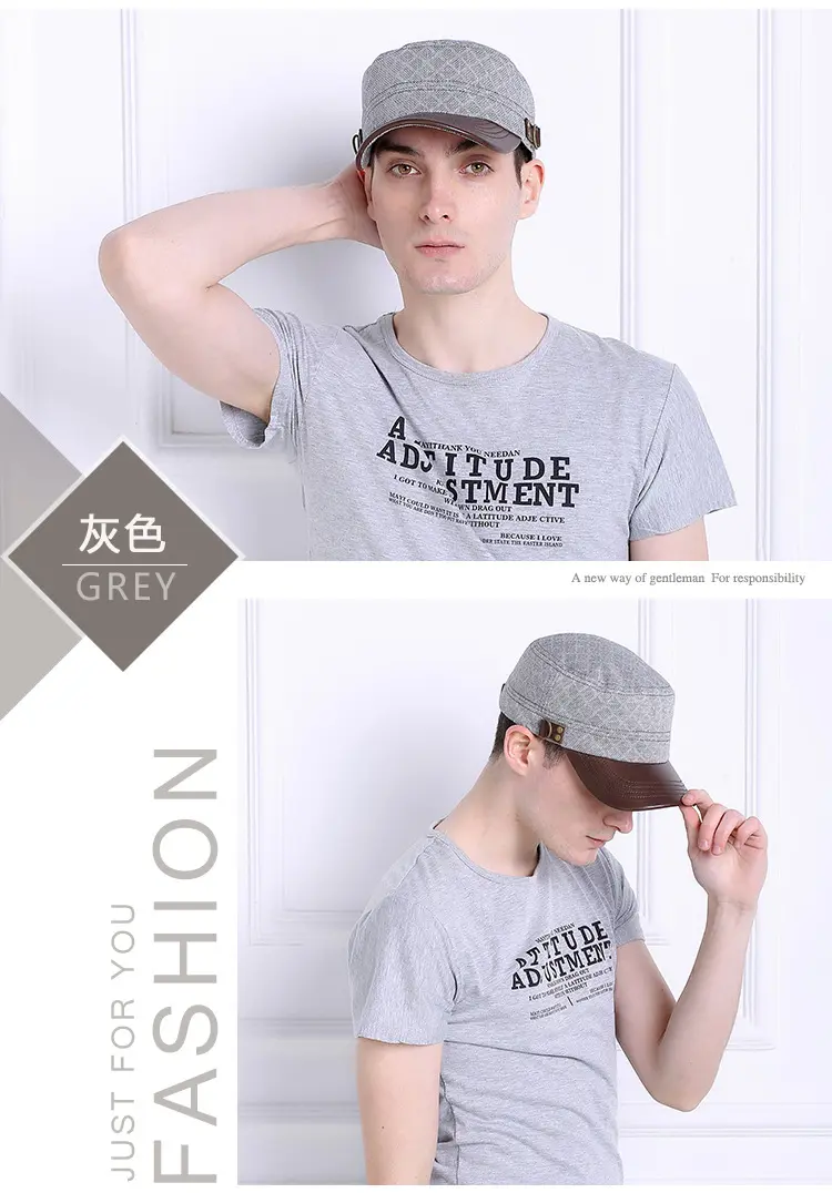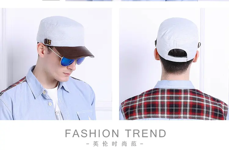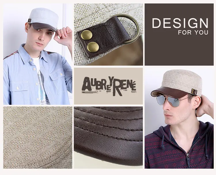 AUBREYRENE男款全棉提花军众赢国际平台韩版皮众赢国际平台檐鸭舌众赢国际平台时尚户外休闲平顶众赢国际平台