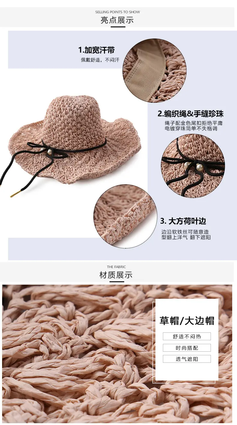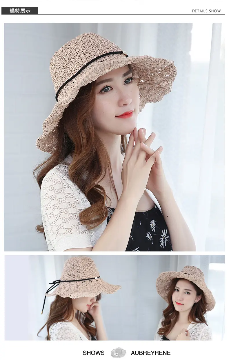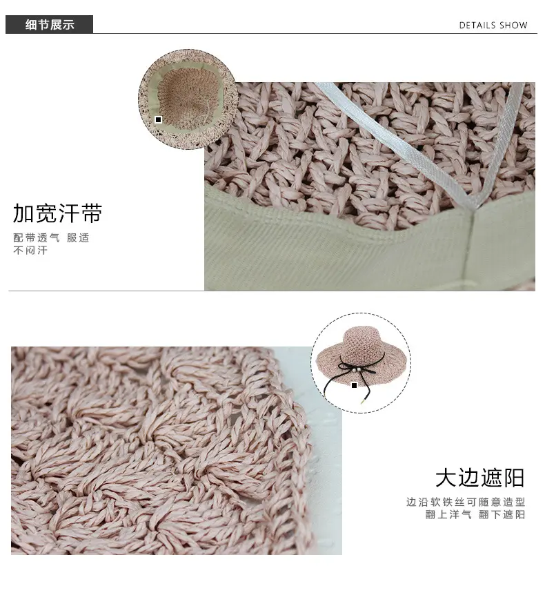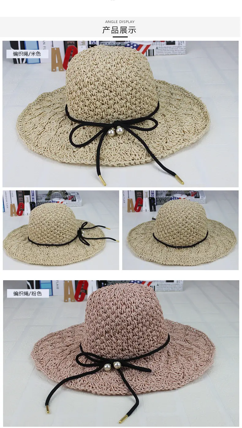 众赢国际平台子韩版草众赢国际平台女夏天新款蝴蝶结遮阳众赢国际平台时尚沙滩众赢国际平台可折叠太阳众赢国际平台批发
