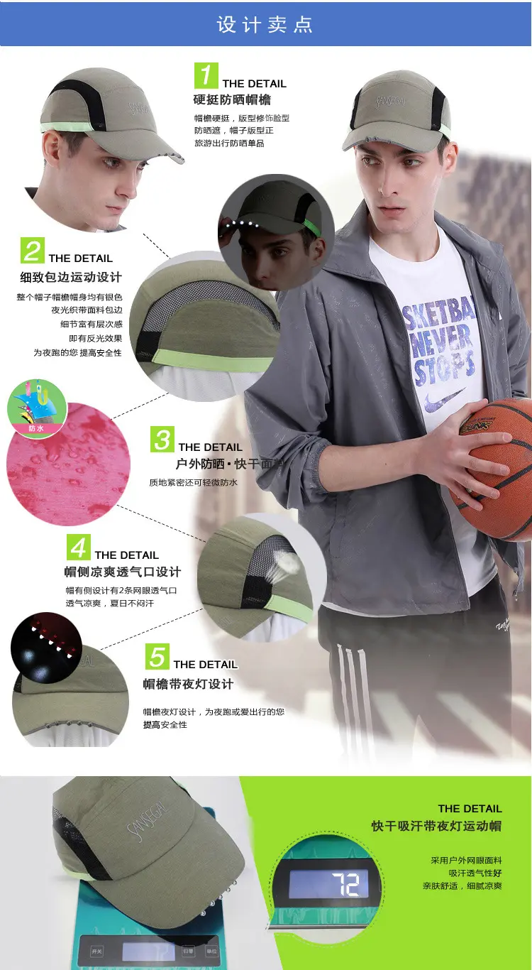 批发户外吸湿速干功能性运动众赢国际平台马拉松跑步众赢国际平台子 夜跑LED照明棒球众赢国际平台