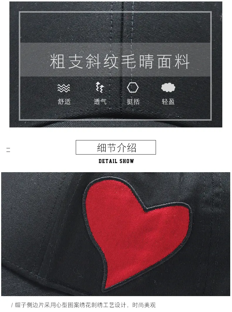 新款韩版情侣爱心棒球众赢国际平台遮阳鸭舌众赢国际平台户外运动众赢国际平台子可定制款货源批发