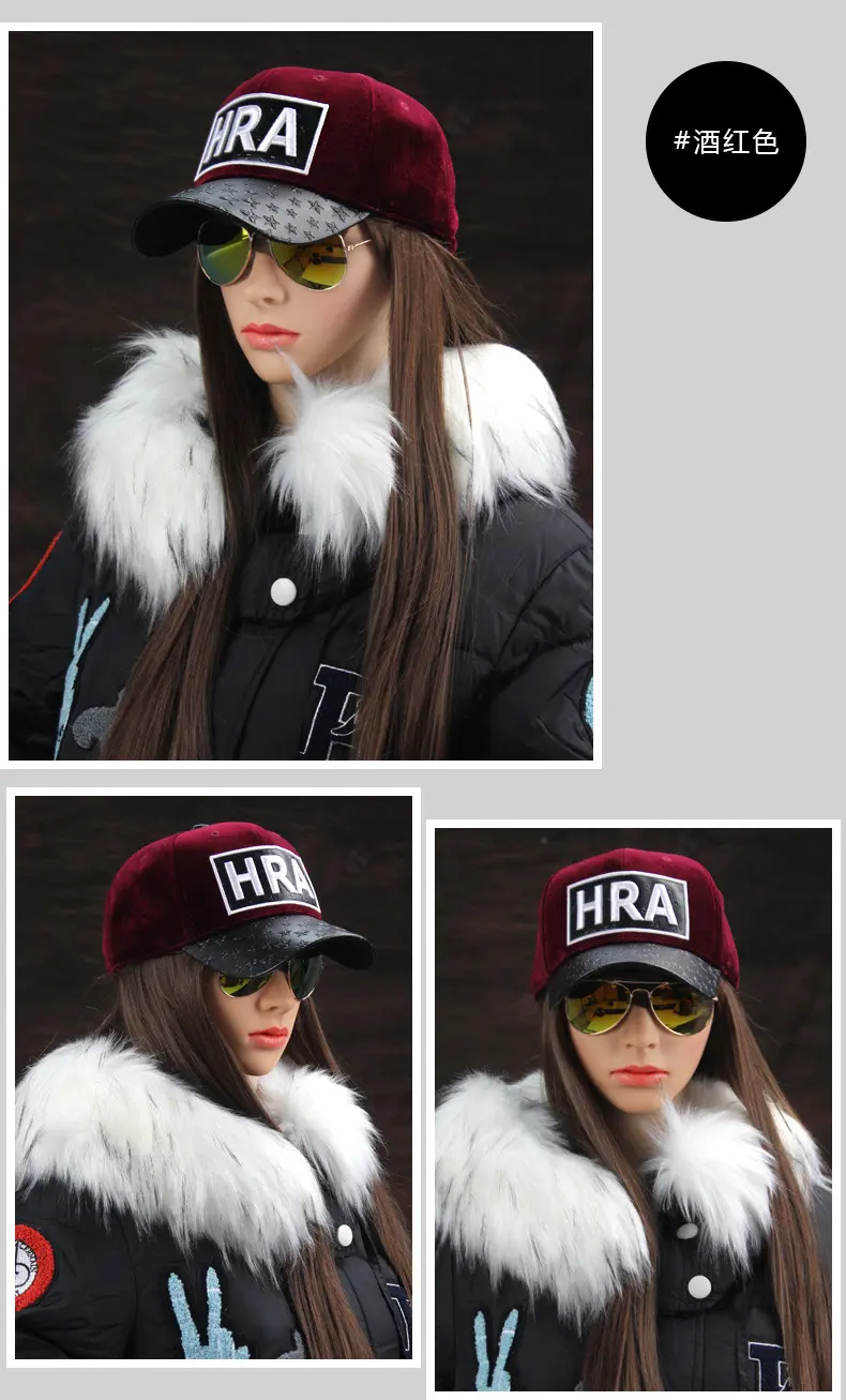 众赢国际平台子秋冬女款韩版丝绒众赢国际平台时尚PU鸭舌众赢国际平台3D绣花棒球众赢国际平台加厚保暖众赢国际平台批发