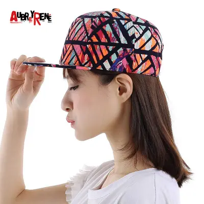 嘻哈众赢国际平台女士新款超轻透气韩版平沿众赢国际平台真彩印花时尚遮阳众赢国际平台街舞众赢国际平台现货 -