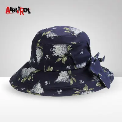 "众赢国际版" AUBREYRENE/欧贝蕾 女士防晒遮阳大边众赢国际平台韩版淑女印花麻棉渔夫众赢国际平台 -