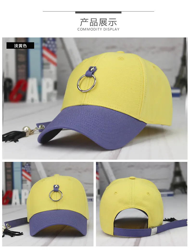 众赢国际版 - 众赢国际平台子韩版时尚棉质防晒朋克铁环鸭舌众赢国际平台个性流苏街舞棒球众赢国际平台现货批发