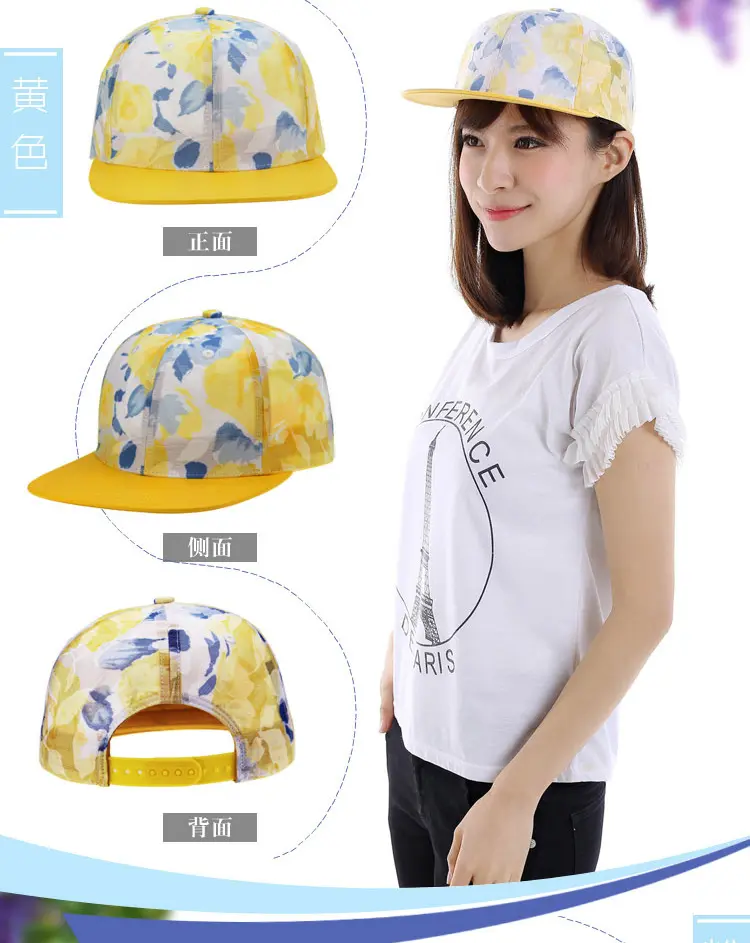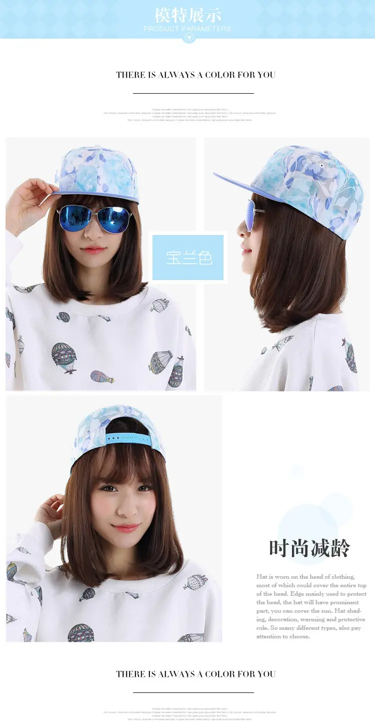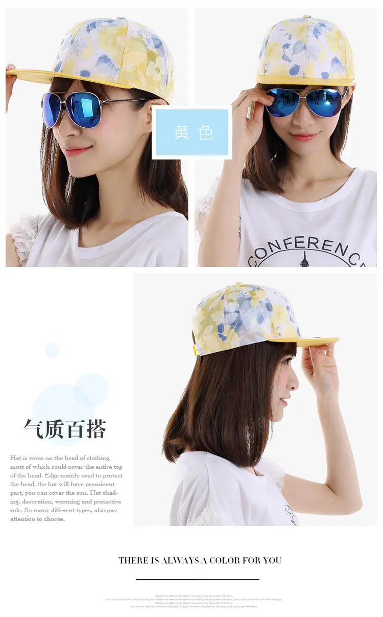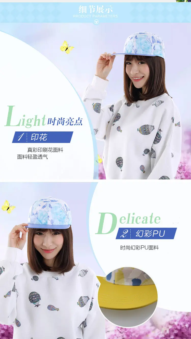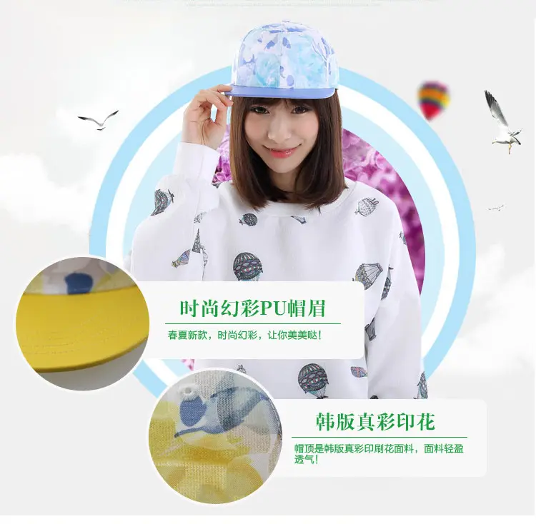 嘻哈众赢国际平台女士新款超轻透气韩版平沿众赢国际平台真彩印花时尚遮阳众赢国际平台街舞众赢国际平台现货