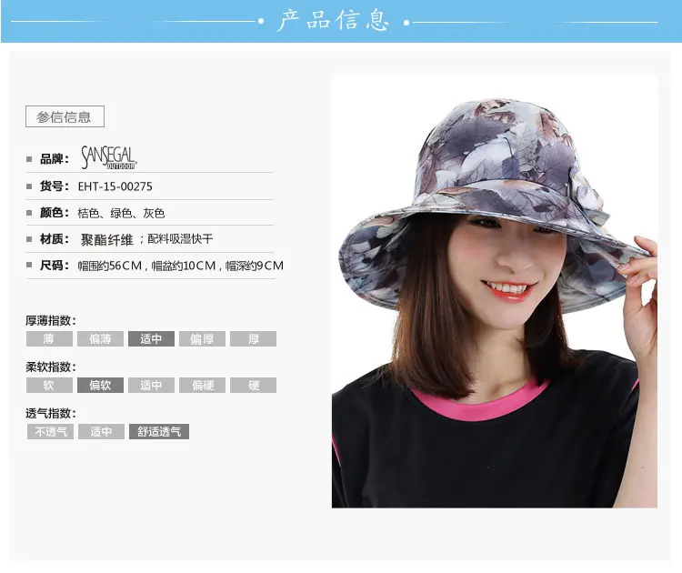 Sanseagal/山涉谷 女士户外防晒防紫外线吸湿快干印花大檐渔夫众赢国际平台