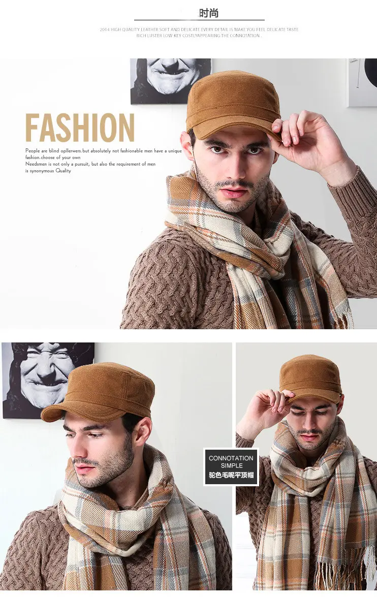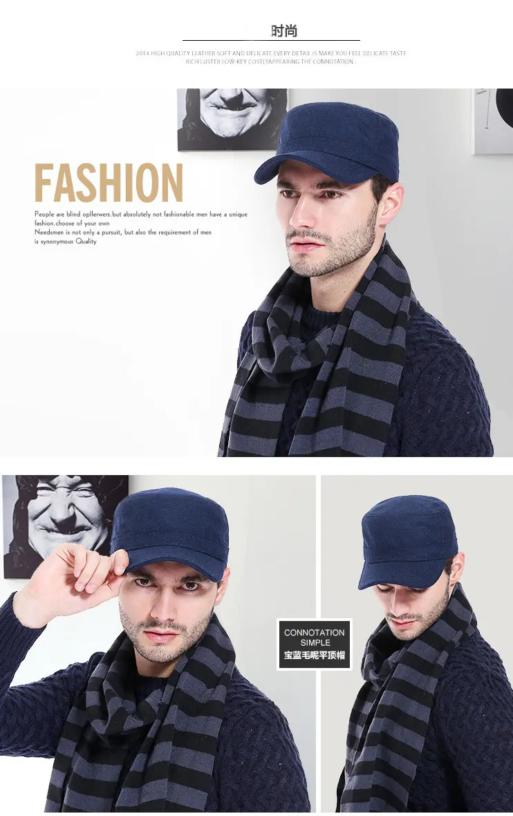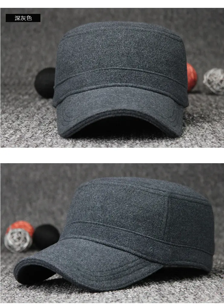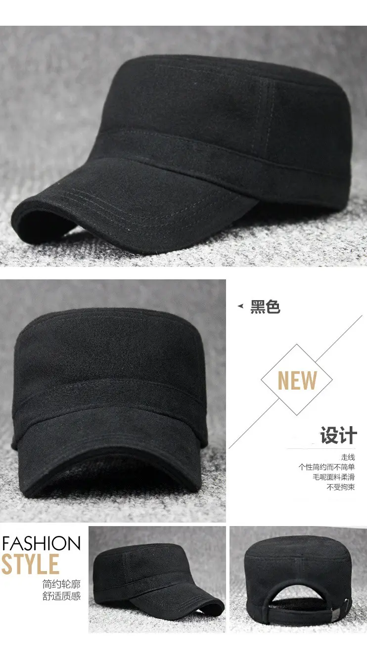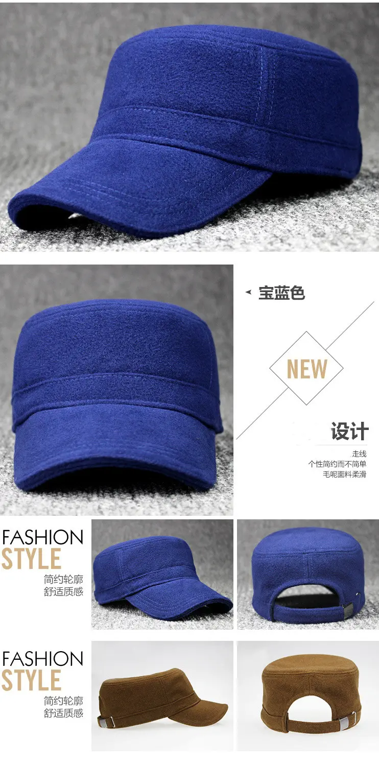 众赢国际平台子秋冬男士新款保暖呢料平顶众赢国际平台时尚纯色韩版军众赢国际平台户外鸭舌众赢国际平台批发