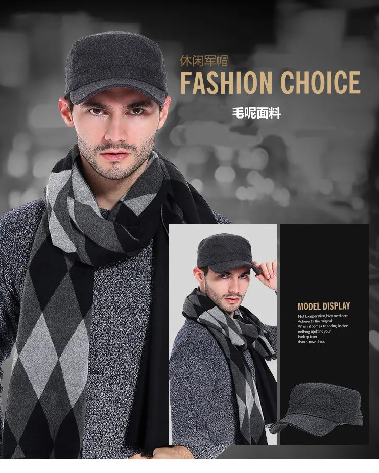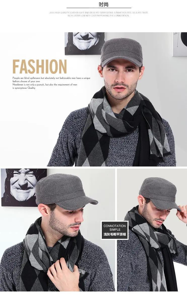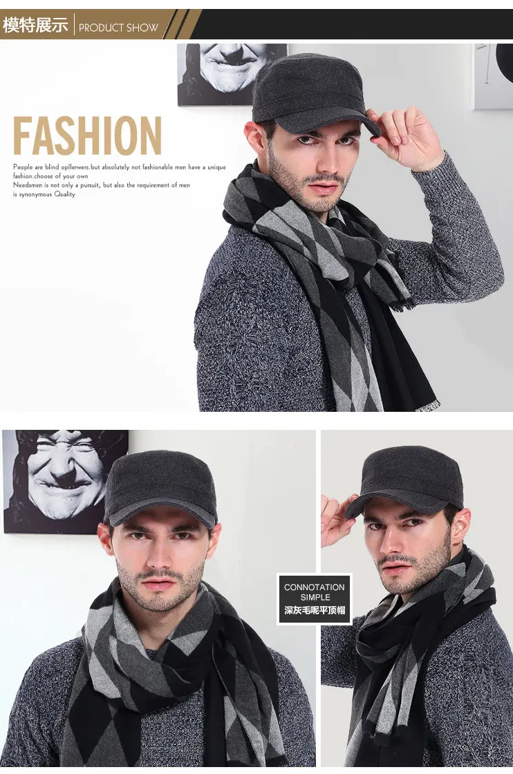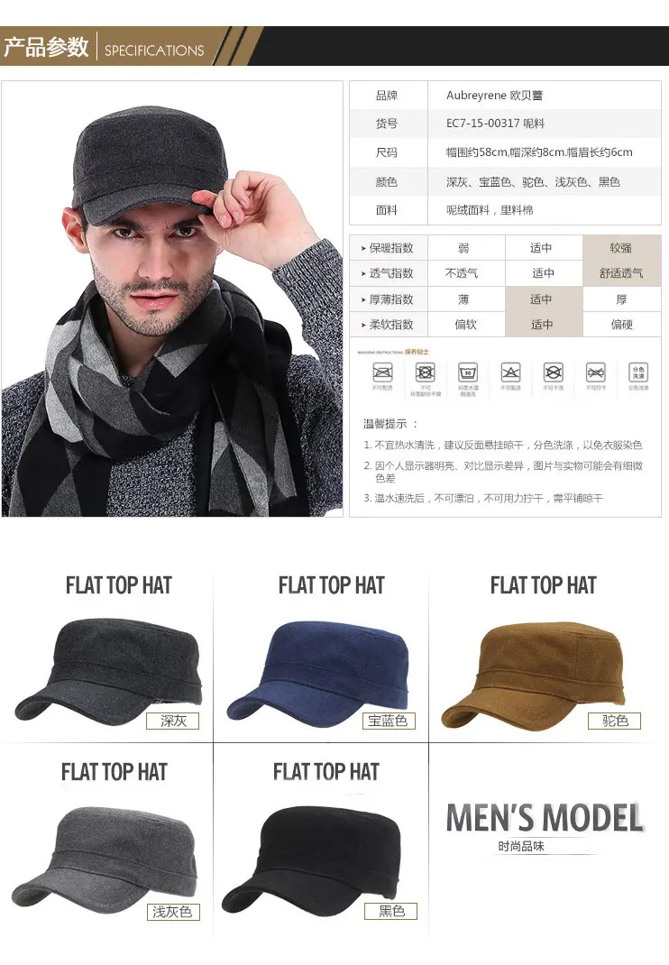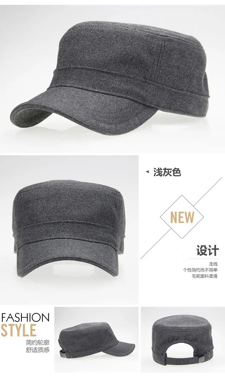 众赢国际平台子秋冬男士新款保暖呢料平顶众赢国际平台时尚纯色韩版军众赢国际平台户外鸭舌众赢国际平台批发