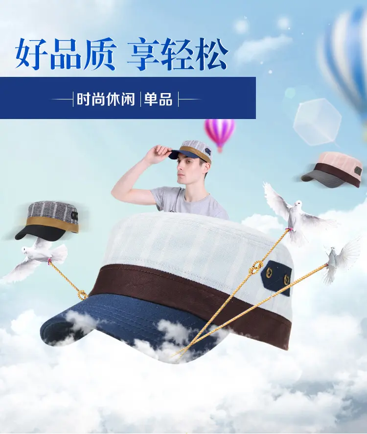 AUBREYRENE男款全棉韩版军众赢国际平台时尚户外休闲平顶众赢国际平台遮阳防晒鸭舌众赢国际平台