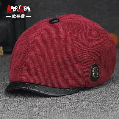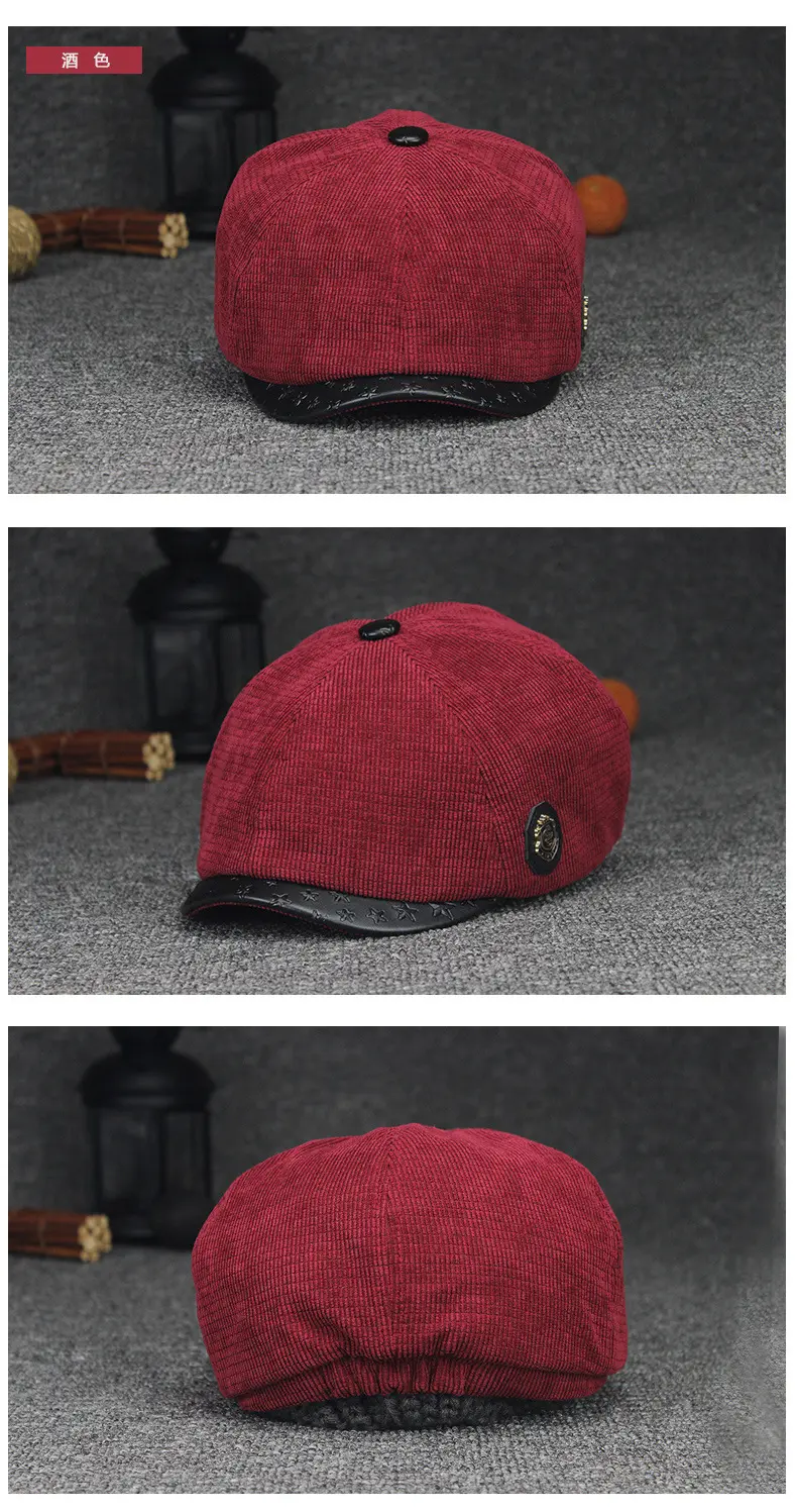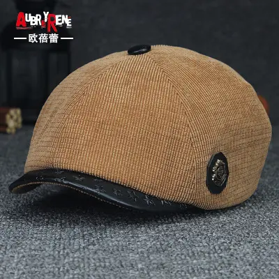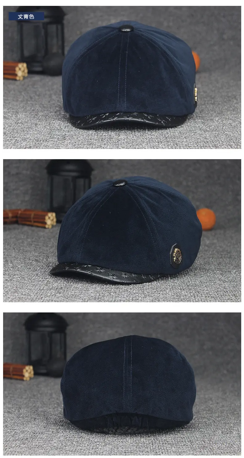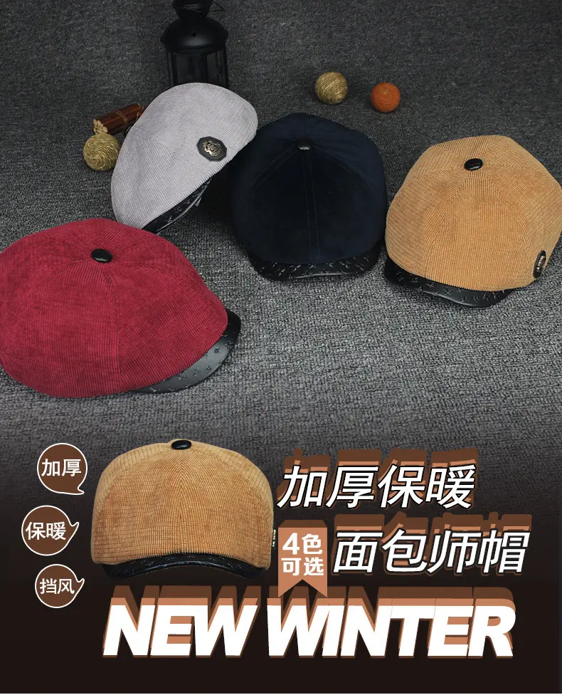 跨境专供秋冬百搭韩版时尚鸭舌众赢国际平台亚马逊男士加绒加厚贝雷众赢国际平台休闲众赢国际平台