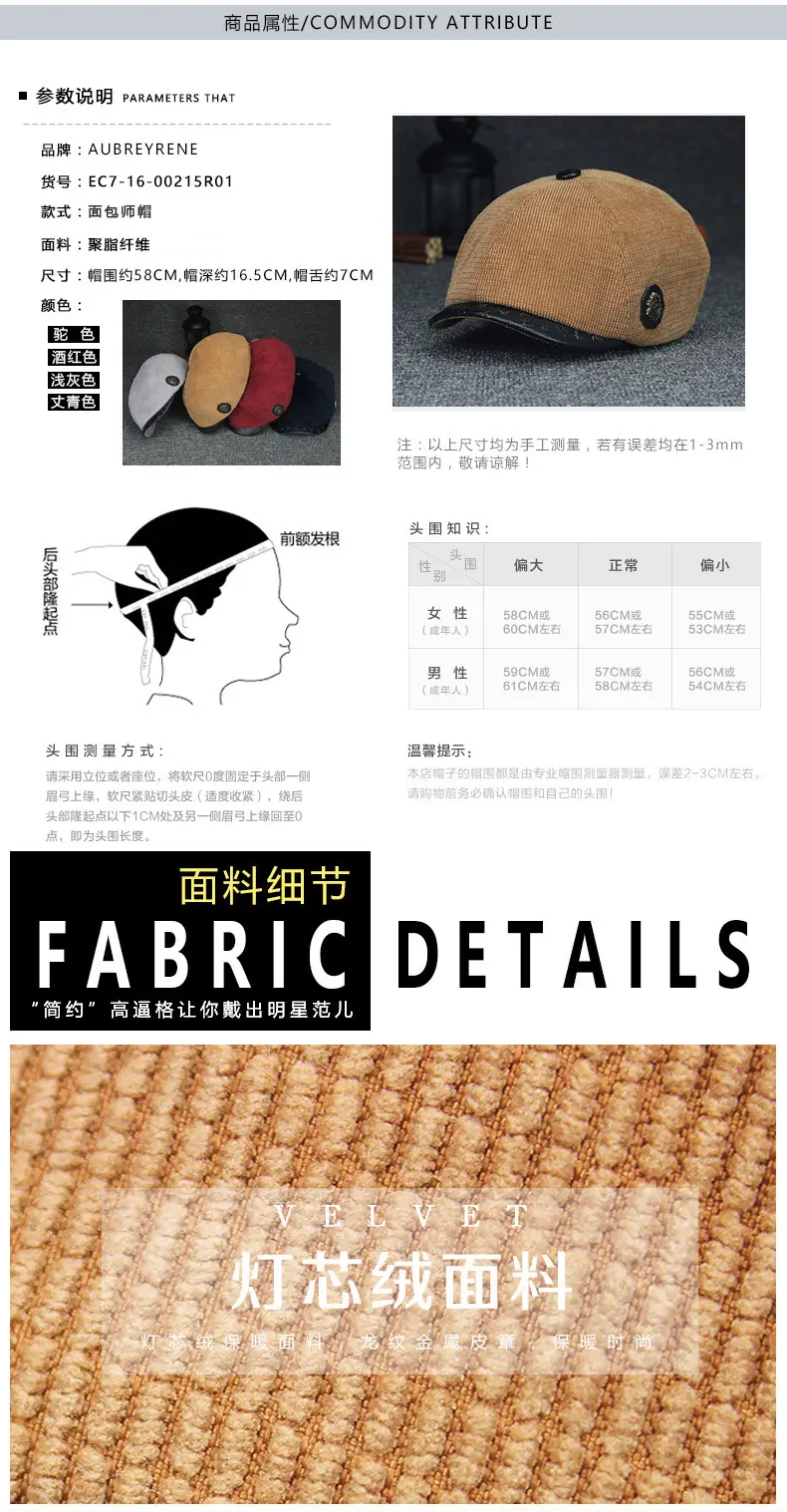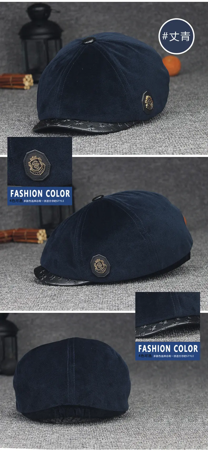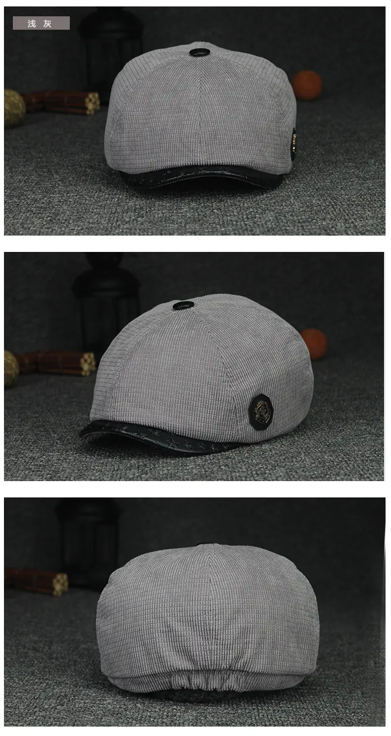 跨境专供秋冬百搭韩版时尚鸭舌众赢国际平台亚马逊男士加绒加厚贝雷众赢国际平台休闲众赢国际平台