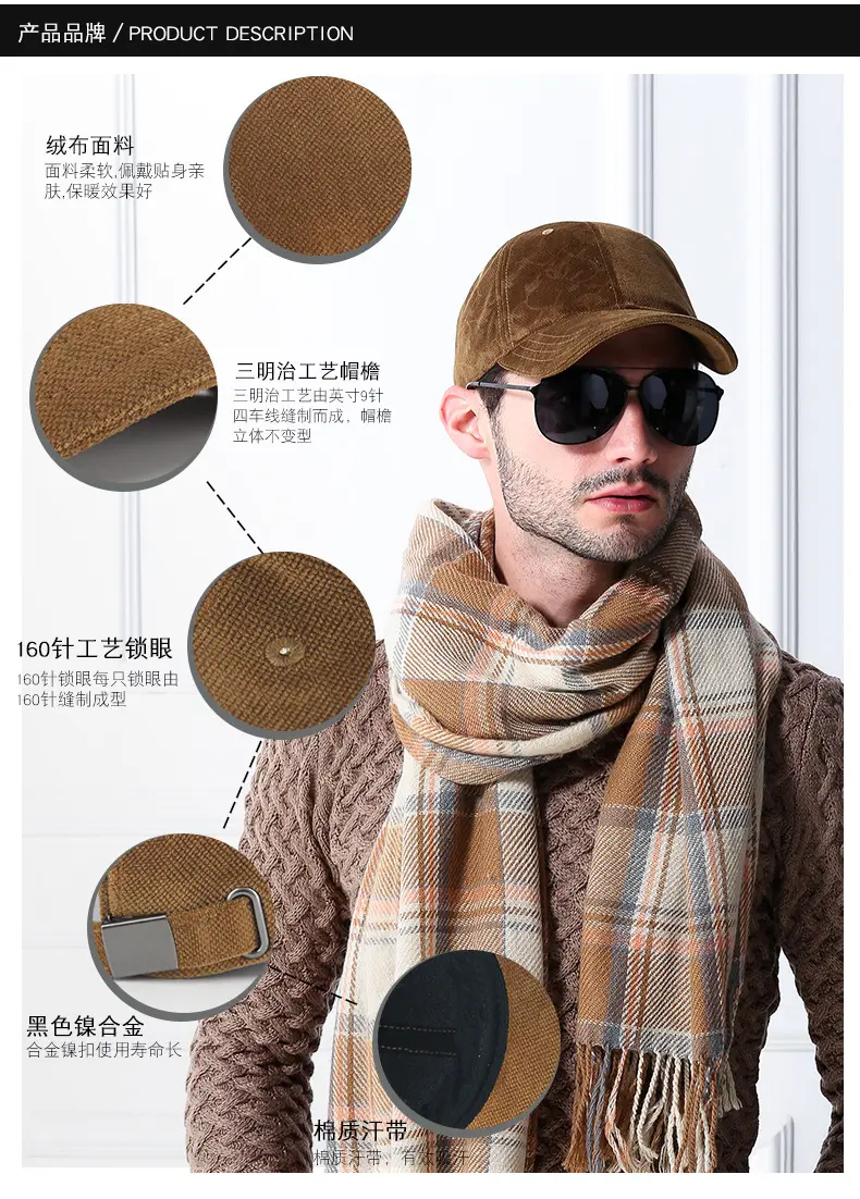 棒球众赢国际平台新款秋冬男士棒球众赢国际平台保暖绒料百搭户外休闲鸭舌众赢国际平台子一件代发