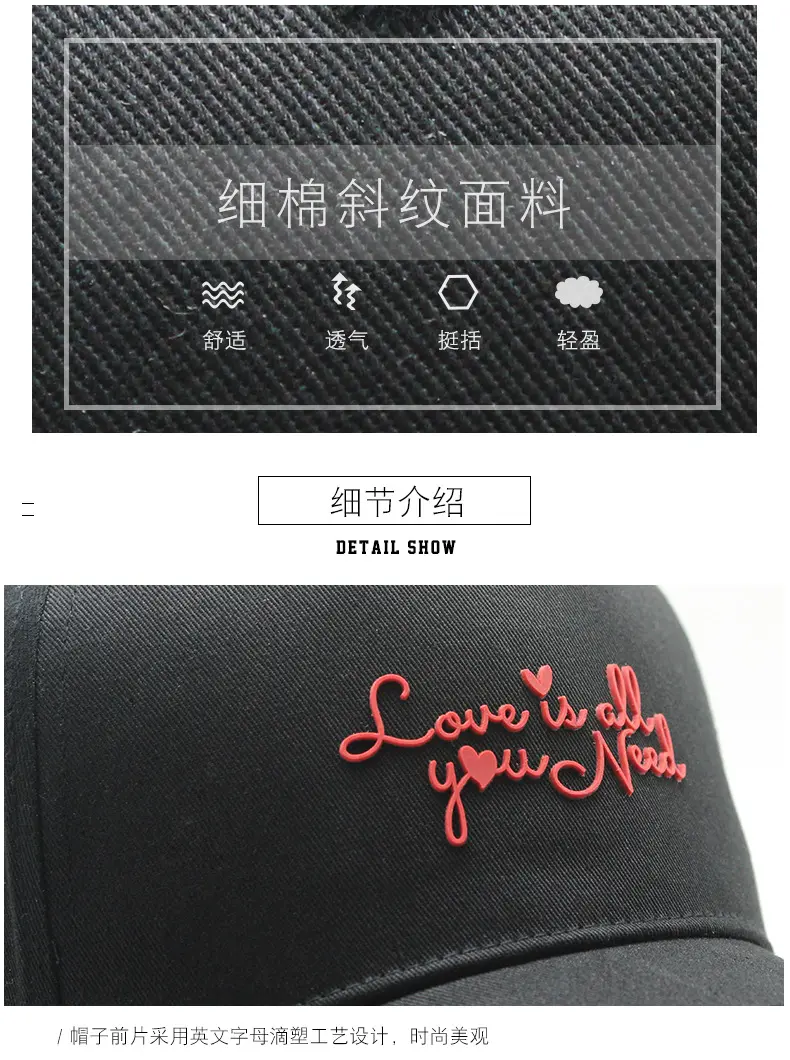 夏天防晒鸭舌众赢国际平台韩版潮休闲百搭日系字母爱心情侣棒球众赢国际平台女众赢国际平台子批发