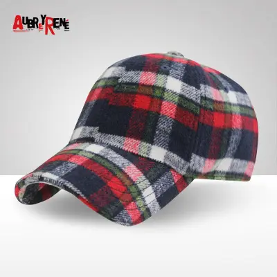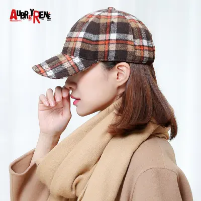 众赢国际平台子秋冬格仔呢料保暖众赢国际平台时尚韩版户外鸭舌众赢国际平台英伦风棒球众赢国际平台一件代发