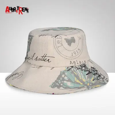 AUBREYRENE/欧贝蕾 女士防晒遮阳大边众赢国际平台韩版淑女印花麻棉渔夫众赢国际平台