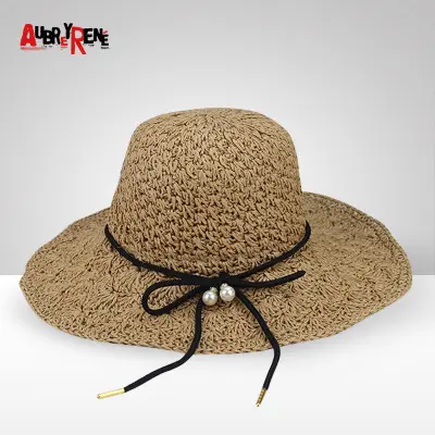 众赢国际平台子夏天沙滩珍珠遮阳众赢国际平台 大檐宽檐草编太阳草众赢国际平台防晒蝴蝶结众赢国际平台女士 (众赢国际版)
