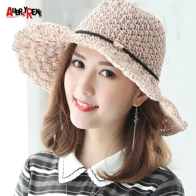 夏天女士手工草众赢国际平台海边防晒太阳众赢国际平台 韩版可折叠度假遮阳众赢国际平台沙滩众赢国际平台子
